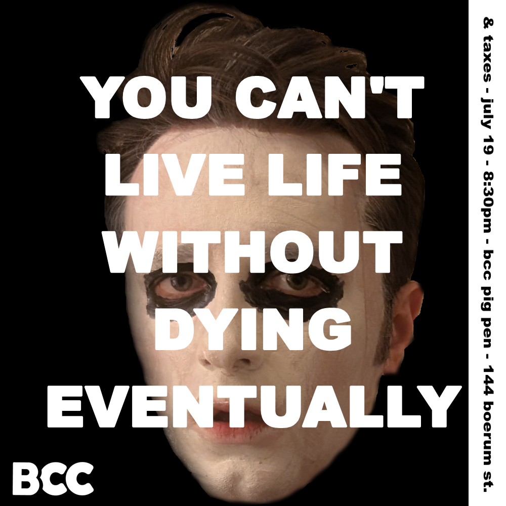 We’re all going to die! and Jasper the Ghost knows this better than anyone. & taxes is a solo clown show where Jasper the Ghost pursues his lifelong (and deathlong) dream of being a famous stand-up comedian, explores the ups and downs of being a ghost, processes his own death, and helps you make the most of being alive.